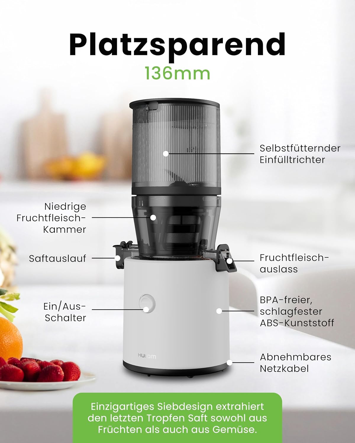 • Langzeit-Investition: Hurom bietet auf dieses Modell eine beeindruckende Garantie von 15 Jahren auf den Motor (bitte Herstellerbedingungen beachten), was die Qualität unterstreicht.